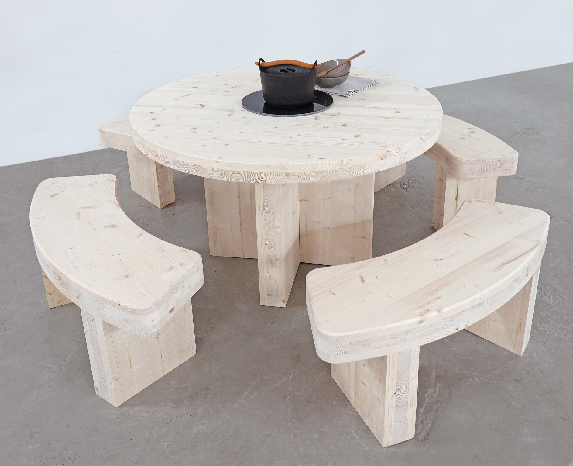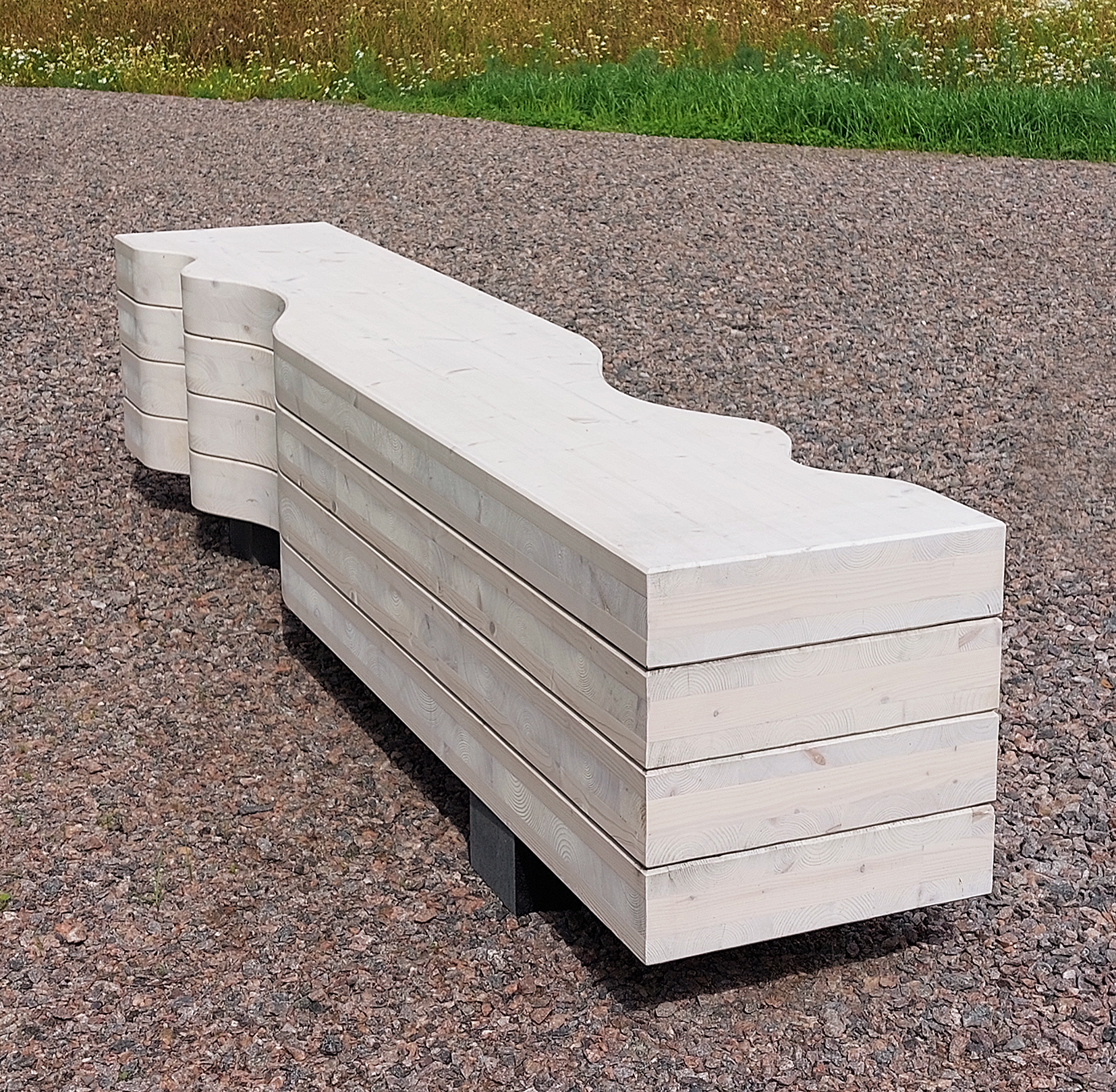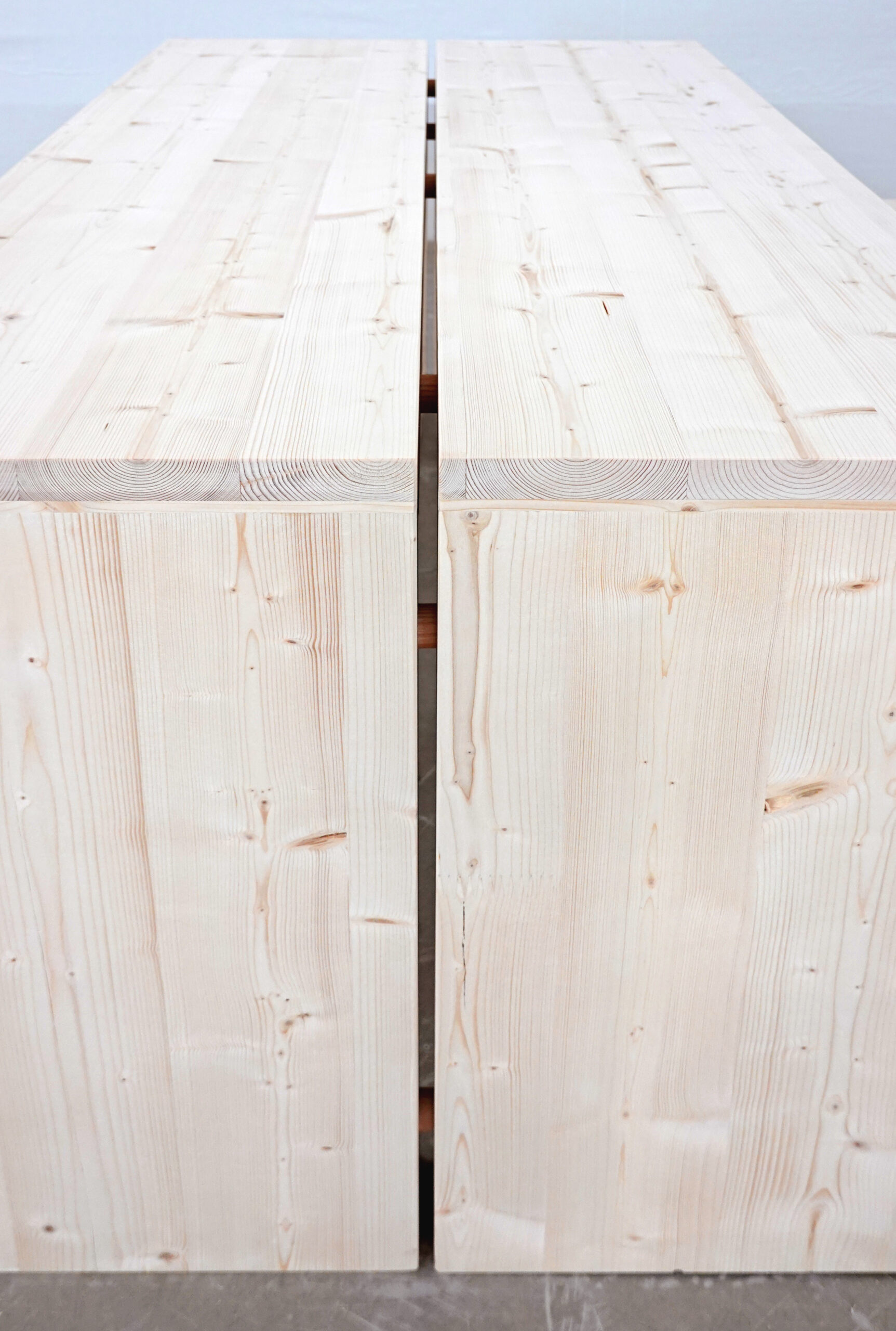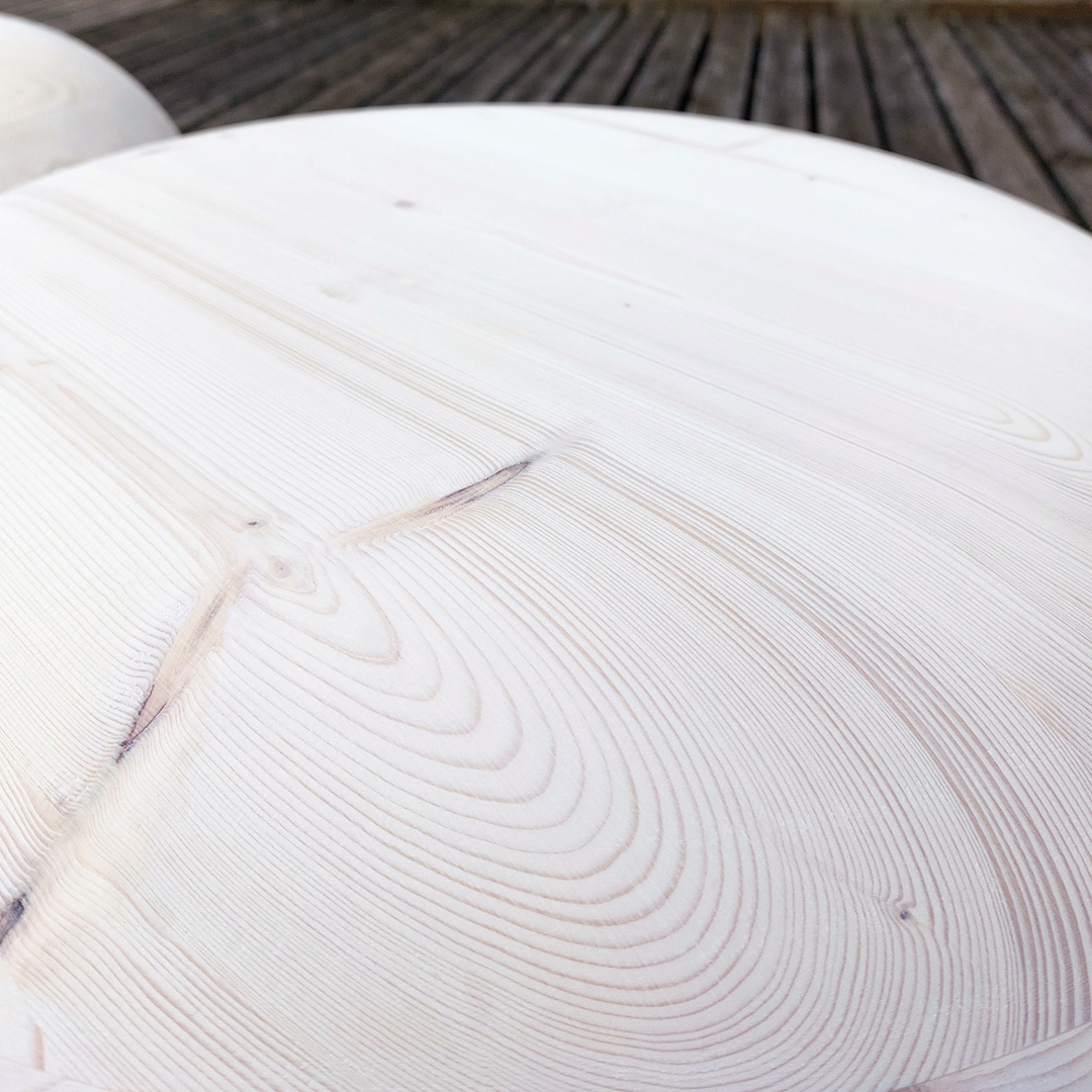 CLT-pientuotteet valmistetaan kotimaisesta kuusesta ja levyjen yleisin vahvuus on 90-100 mm. Ristiin liimattu puulevy kestää hyvin ulkokäytössä, mutta sen pintaan ilmaantuu ajan myötä usein pieniä halkeamia sekä luonnollista kulumaa ja patinoitumista. Nämä muutokset eivät vaikuta tuotteiden käytettävyyteen ja massiivipuuta voi myös hioa ja huoltokäsitellä pidentäen niiden käyttöikää.