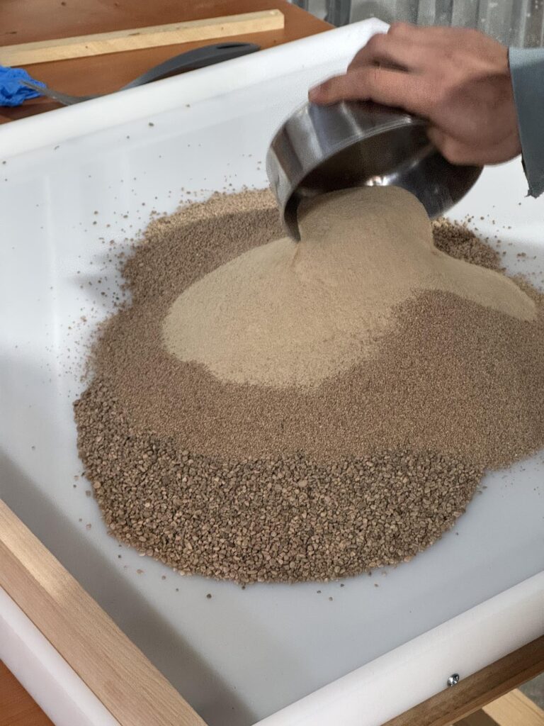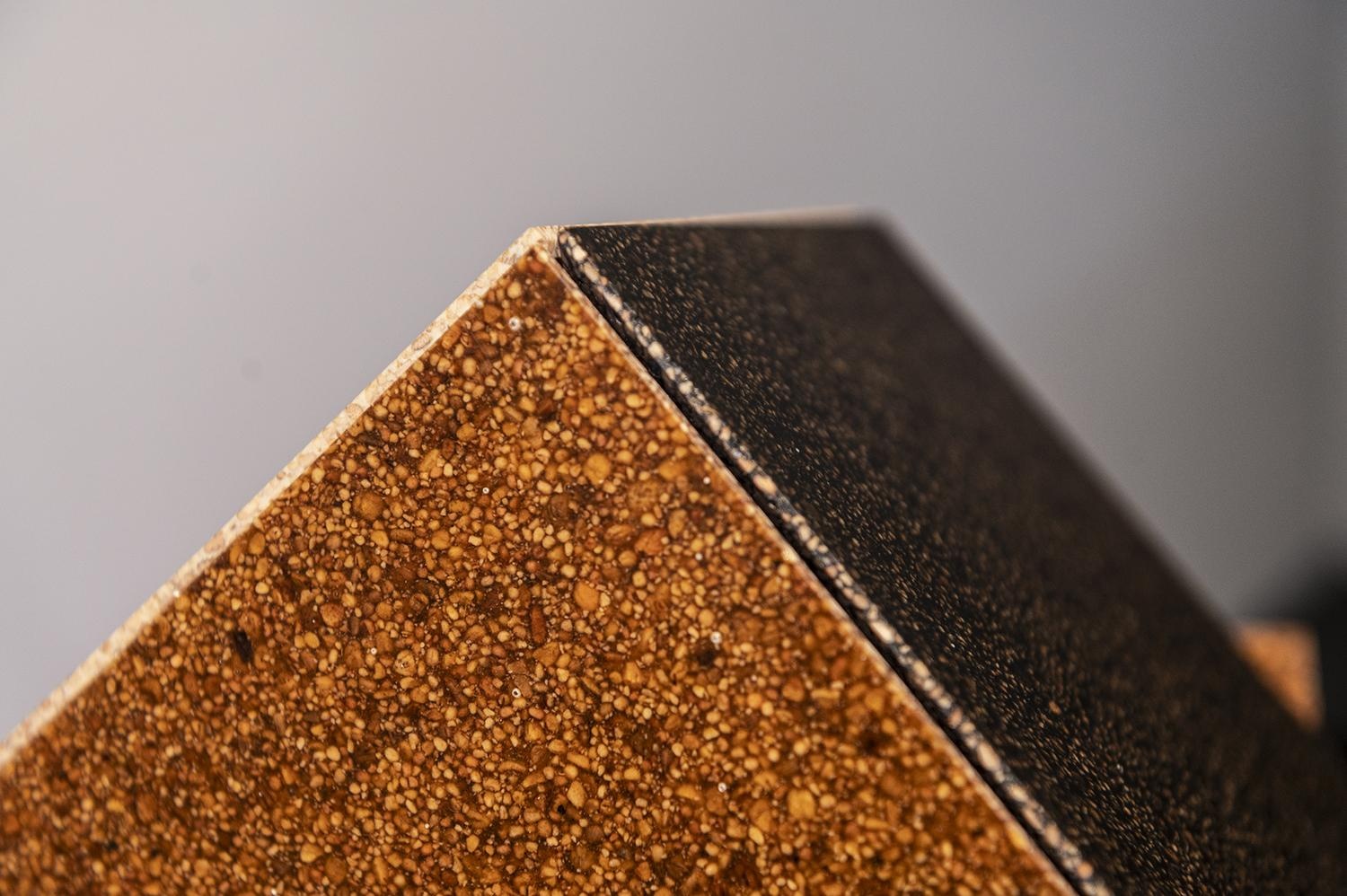 Levyissä vähintään 60% on oliivinkiviä, jotka on puhdistettu ja murskattu 4 erikokoisiksi rakeiksi. Levyt valmistetaan muoteissa ja sideaineena käytetään elintarvikekelpoista eko-hartsia.