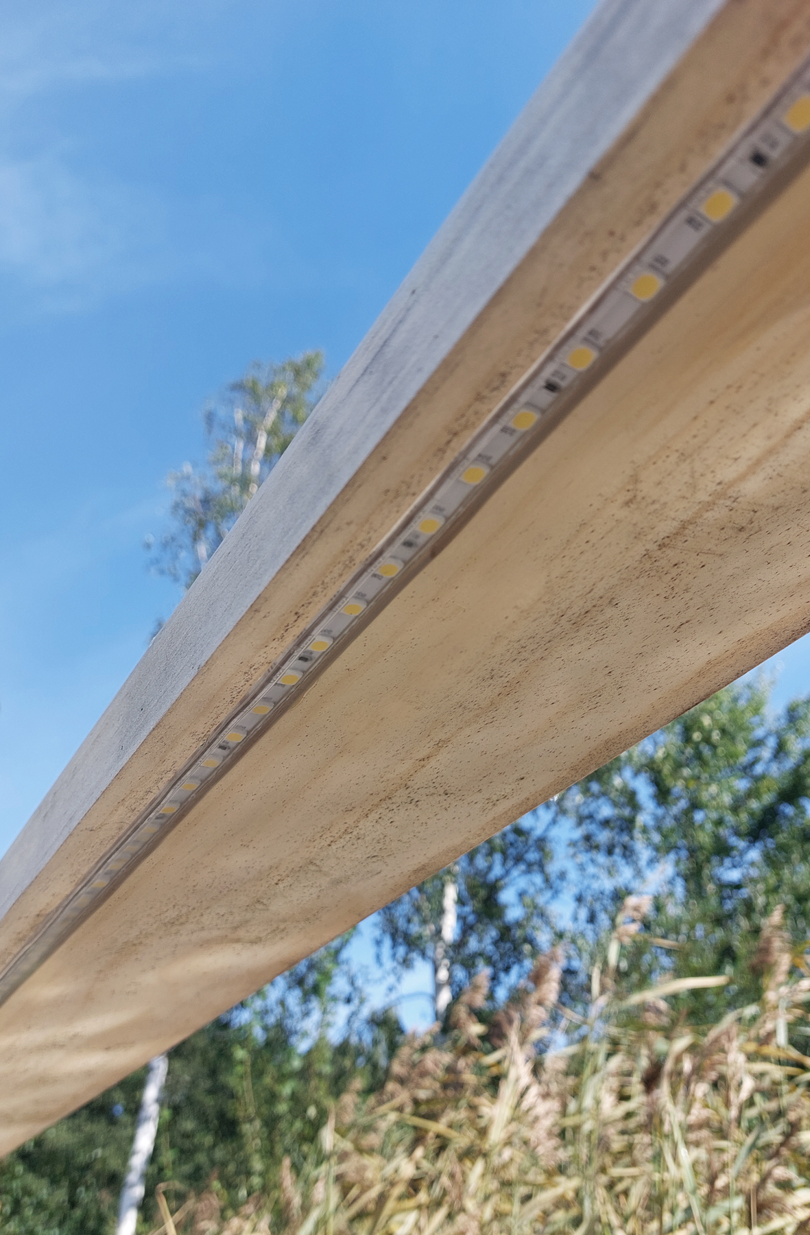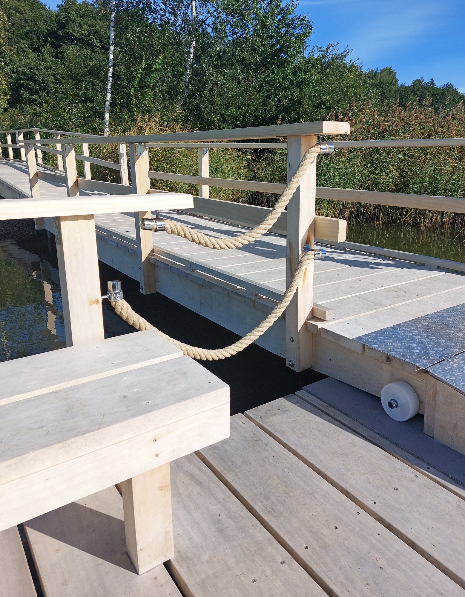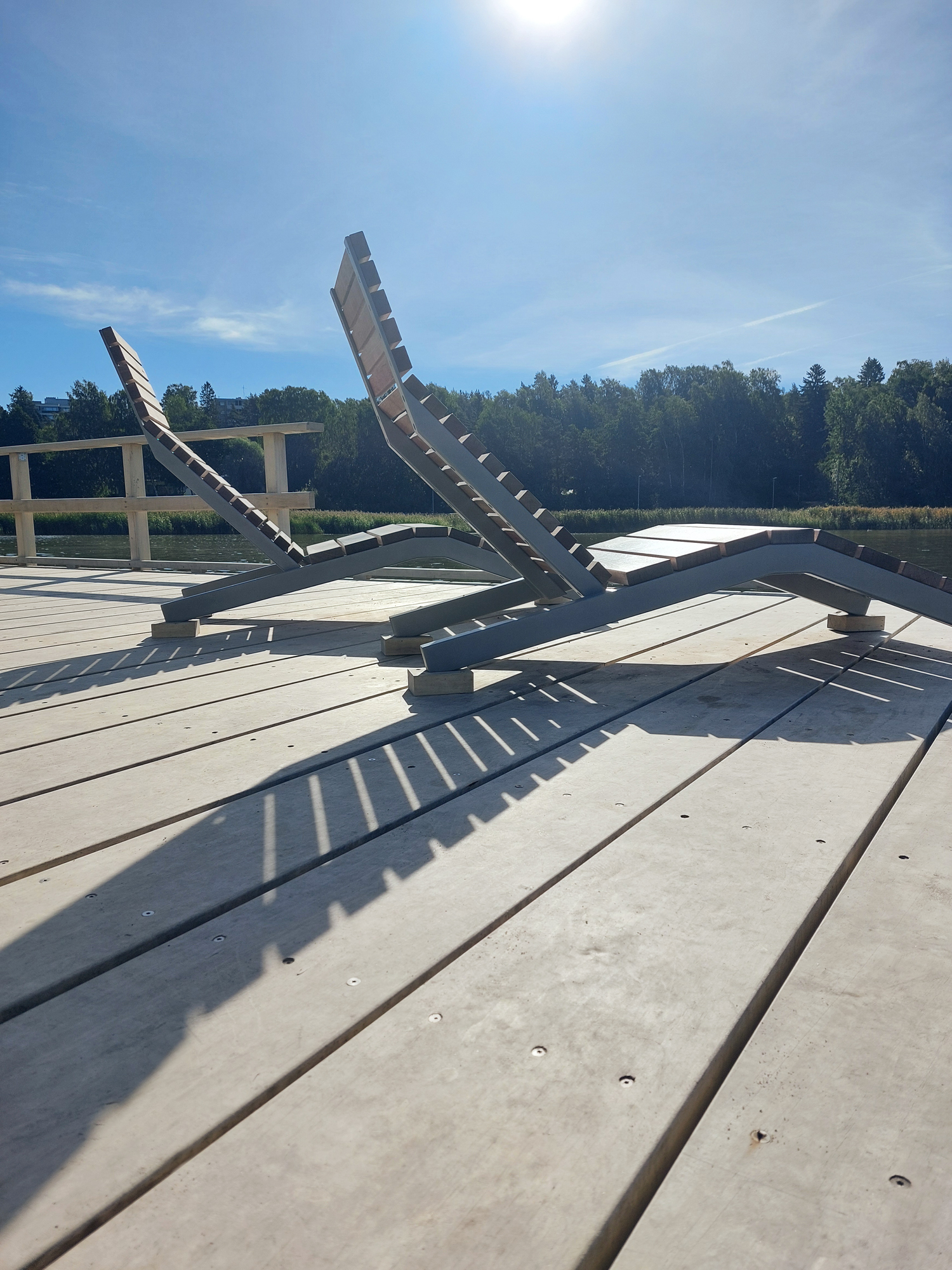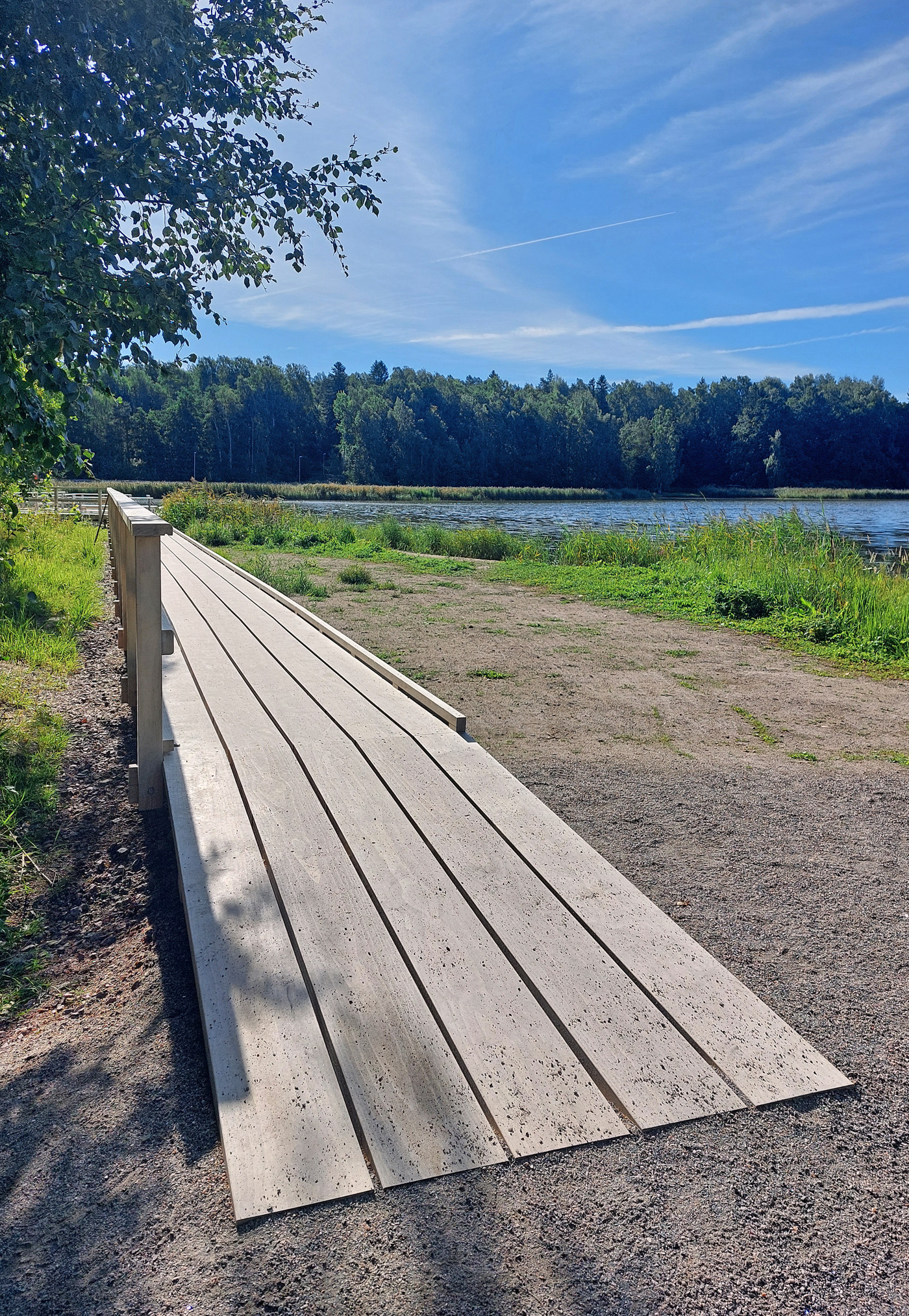 Helsingin Vartiokylänlahden rantaan valmistui kesällä 2024 upea Accoya -puinen oleskelulaituri. Myrkytön Accoya on varma valinta meren rannalle luonnon läheisyyteen, jossa puulta vaaditaan erityisen hyvää kestävyyttä. Julkisessa käytössä puurakenteiden tulee olla myös helposti huollettavia ja puumateriaalin turvallisen tikutonta. Laiturin 245 mm leveät kansilaudat ovat tukevat astella ja antavat kokonaisuudelle arvokkaan ilmeen. Käsijohteiden alapintoihin työstettiin urat led-valonauhoille, jotka valaisevat kulkuväylän iltojen pimentyessä.