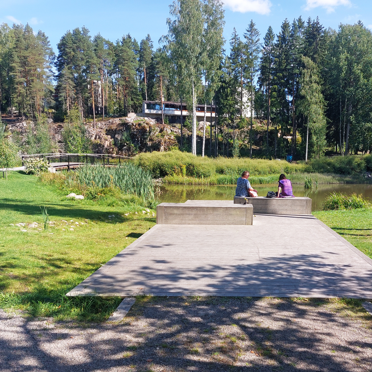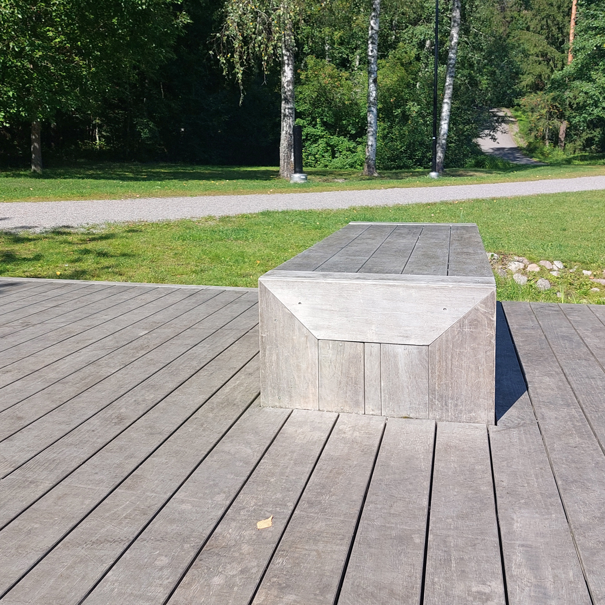 Korson Ankkapuiston kunnostustöitä jatkettiin loppukesästä – alkusyksystä 2019 rakentamalla lammen rannalle puuterassi, jonka materiaaliksi valikoitui jo hyväksi todettu Accoya. Terassin kantavat rakenteet ovat myös Accoyaa, sillä Accoya kestää vähintään 25 vuotta maanvastaisissa rakenteissa. Accoya ei vaadi pintakäsittelyä, ja tässäkin kohteessa sahatavaraa käytettiin sellaisenaan. Terassin ja penkkien pintalaudatt höylättiin 19 x 195 mm laudoiksi.
