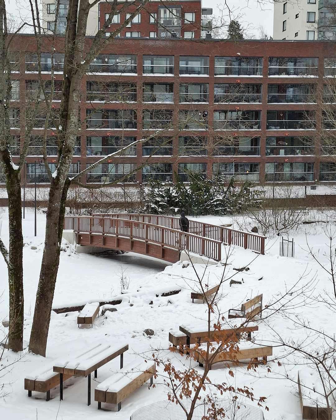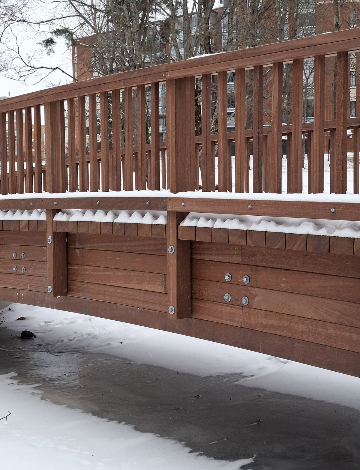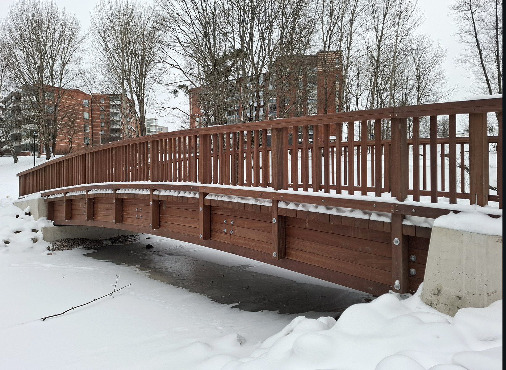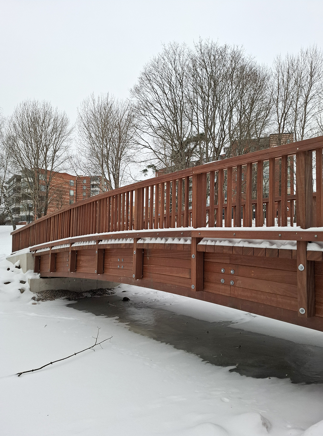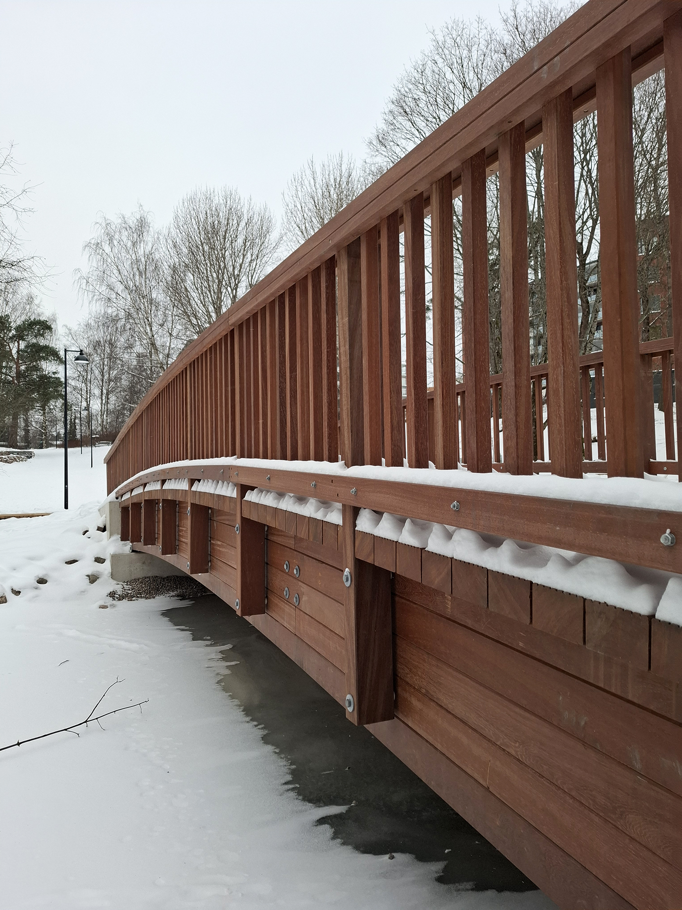 Azobe -puusilta Strömbergin puistossa kestää pakkaset ja paahteet