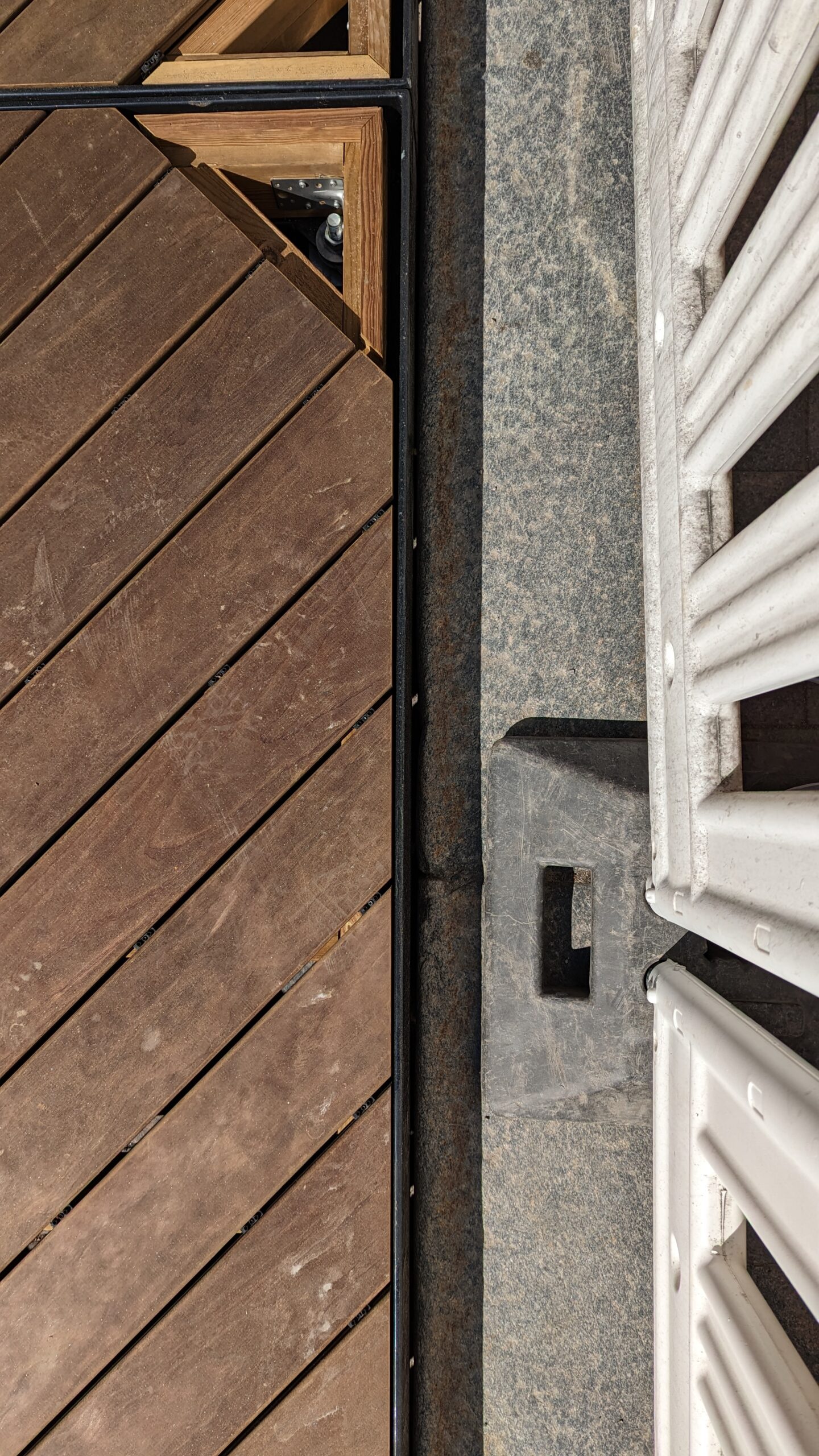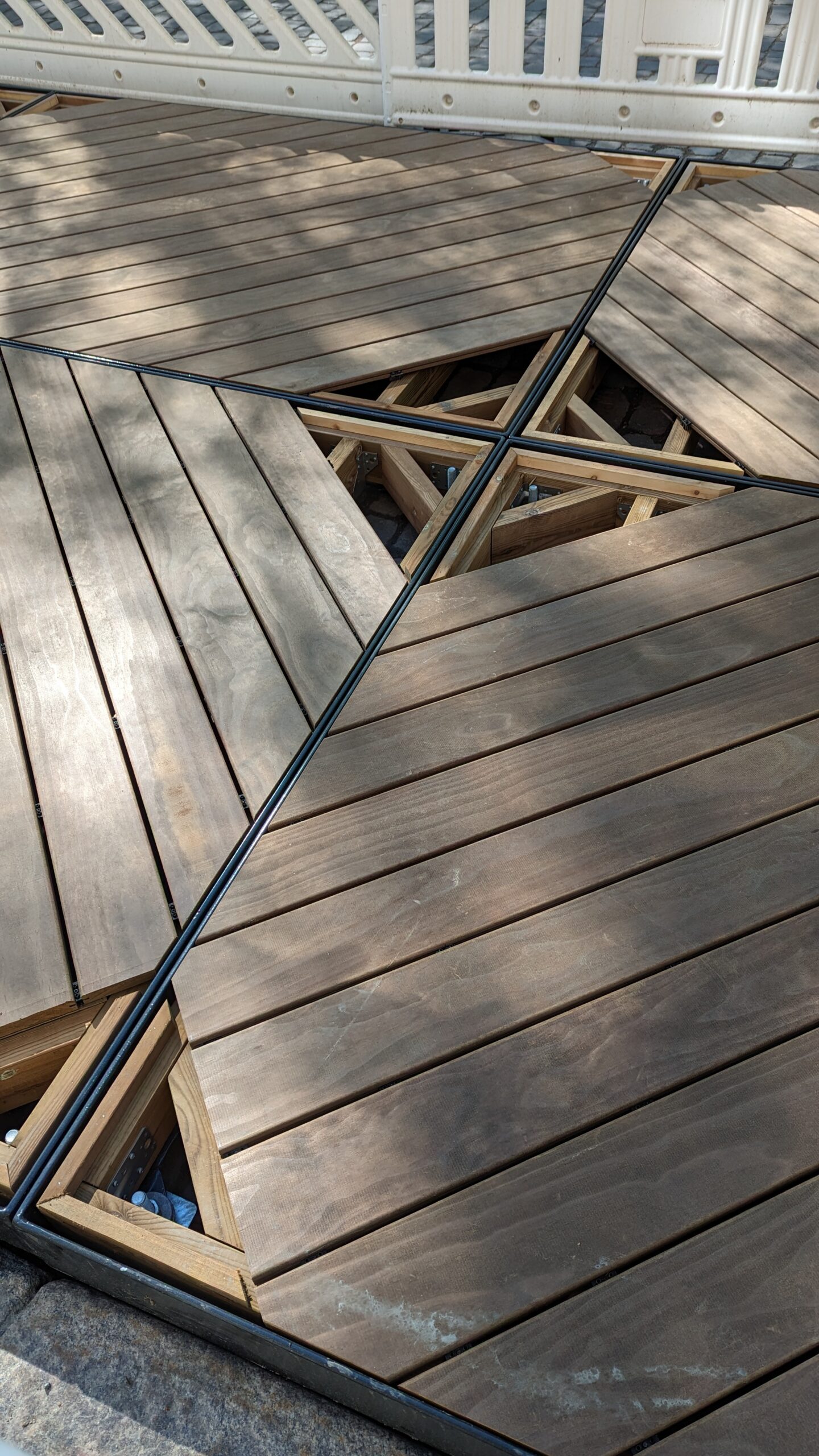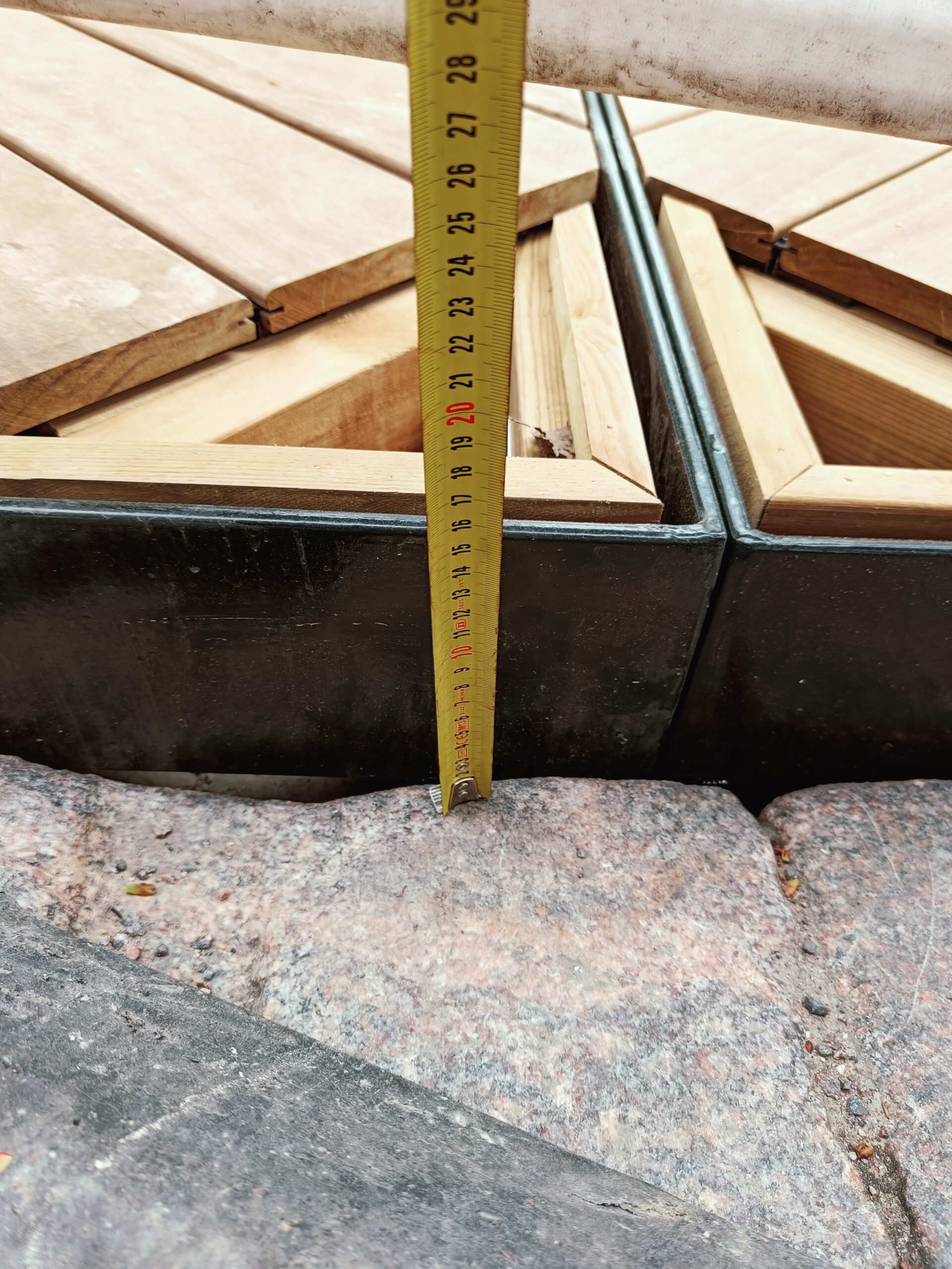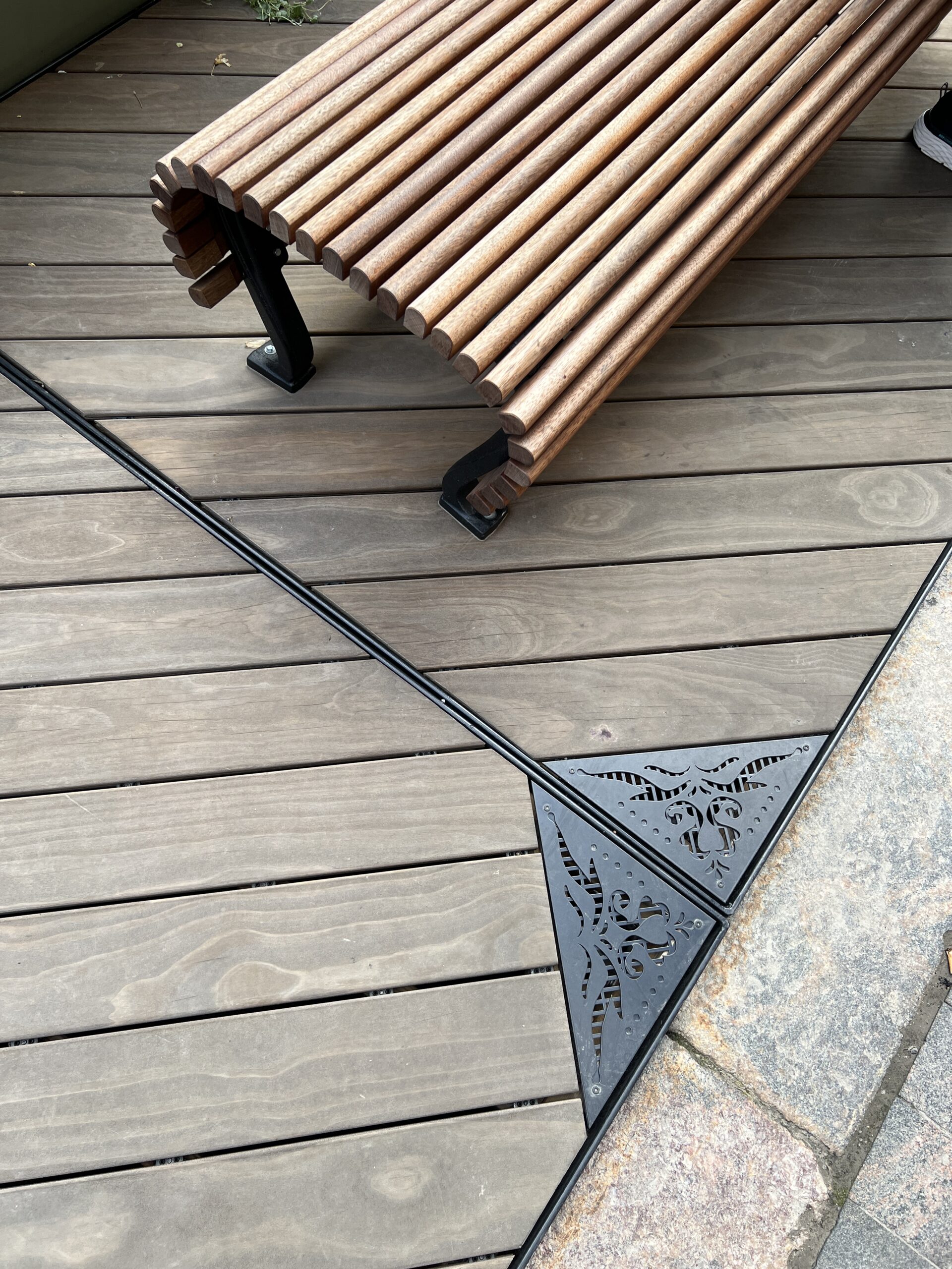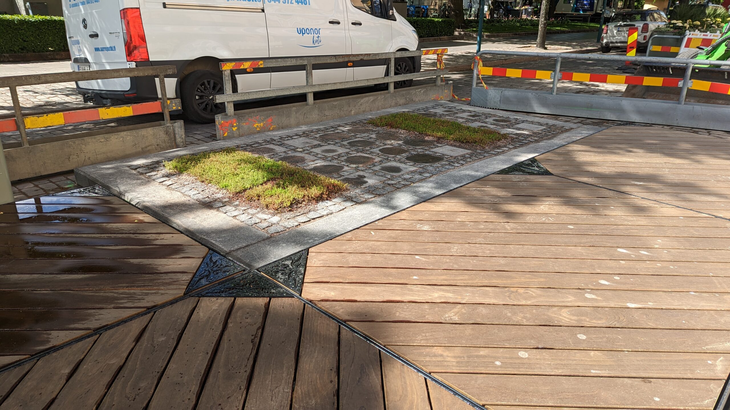 Laajennusalueiden pohjat toteutettiin luonnonkivi- ja puupinnoittein. Kivipintaan Pohjoisesplanadilla käytettiin samaa kotimaista graniittia kuin olemassa olevat jalkakäytävät. Korotettuja puuterasseja rakennettiin kohtiin, joissa sadevesien tuli päästä vapaasti virtaamaan rakenteen alla. Esplanadille varta vasten suunniteltujen terassielementtien Kebony-puupintaa koristi parkettimainen kuvio ja metalliset yksityiskohdat. Tummien teräskoristeiden muotoilussa näkyi ympäröivien rakennusten detaljiikka. Katukokeilun jälkeen terassielementtejä voi käyttää parklet-ratkaisuna.