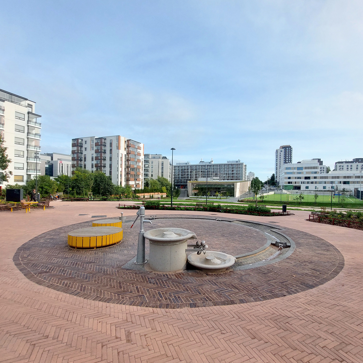 Espoon Matinkylään valmistui kesällä 2024 viihtyisä viheralue, jonka keskiössä puiston korkeimmalla kohdalla on Gotland -maatiilillä päällystetty pyöreä alue. Maatiilet muodostavat puistolle lämpimänsävyisen keskusaukion, josta löytyy myös hauska vesiaihe. Maatiilikate on toteutettu tyylikkäällä kalanruotoladonnalla, jossa tiilien kauniit sävyt pääsevät oikeuksiinsa. Maatiilien koko kohteessa on 52 x 292 mm ja vahvuus 62 mm, joka kestää satunnaista autoliikennettä esimerkiksi huoltoajoja varten. Pyöreät muodot ovat saaneet inspiraationsa puiston tynnyri-nimestä ja teema toistuukin kivasti eri puolilla viheraluetta.