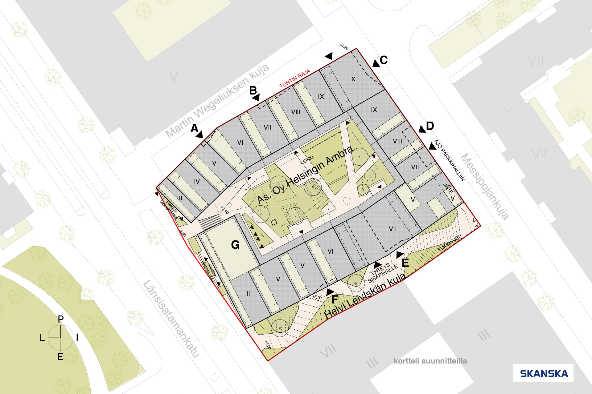 Arkkitehtuuriltaan poikkeuksellisen upea terassitalo Helsingin Ambra valmistui joulukuussa 2024. Suunnitelma syntyi Skanskan ja Helsingin kaupungin järjestämän arkkitehtuurikutsukilpailun tuloksena. Voittajatyön suunnitteli suomalainen arkkitehtitoimisto B & M Oy. Rakennuksessa on korkeimmillaan kymmenen kerrosta ja kodit jakautuvat porrastetusti asuinkerroksiin 2–10. Erityistä taloyhtiössä ovat sen porrasmaisilla tasanteilla olevat terassiasunnot, viherkatot ja viihtyisä sisäpiha, jonka suunnittelusta vastasi LOCI Maisema-arkkitehdit.
