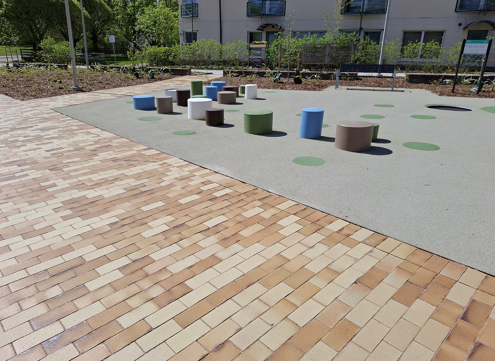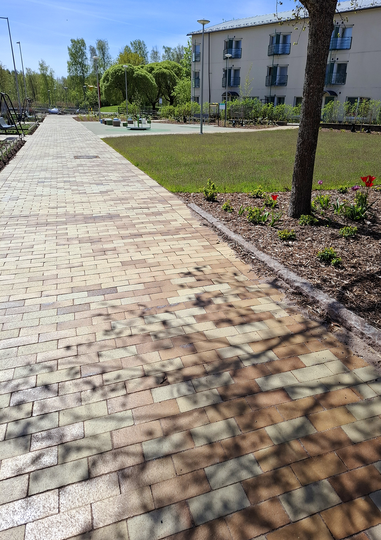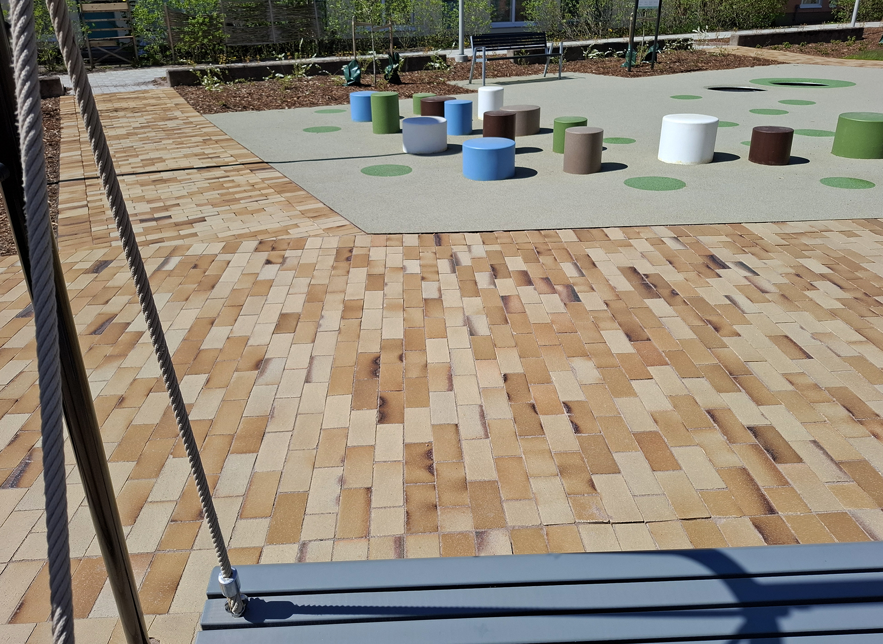 Muusantori sai uuden aurinkoisen ilmeen, kun puistomaisen aukion kulkureitit katettiin okran keltaisilla Odense maatiilillä. Viihtyisyyttä lisäämään torialueelle istutettiin myös puita ja pensaita sekä asennettiin uudet keinut, kalusteita sekä leikkivälineitä. Peruskorjauksen yhteydessä myös puiston valaistus uusittiin. Alueen värimaailmaan sopiva ekologinen katemateriaali tuo aukiolle väriä kaikkina vuoden aikoina ja kestää myös talvikunnossapitoa. Novenbergin edustamien maatiilien värit tulevat savessa olevista mineraaleista, eikä tuotteiden valmistuksessa ole käytetty mitään lisä- tai väriaineita . Odense maatiilissä on hyödynnetty myös hiilipolttotekniikkaa, jolla saadaan aikaan keltaisen okran sävyihin lisää vaihtelevuutta ja mielenkiintoista efektiä. Lue lisää maatiilien väreistä: https://novenberg.fi/maatiilien-varimallit/